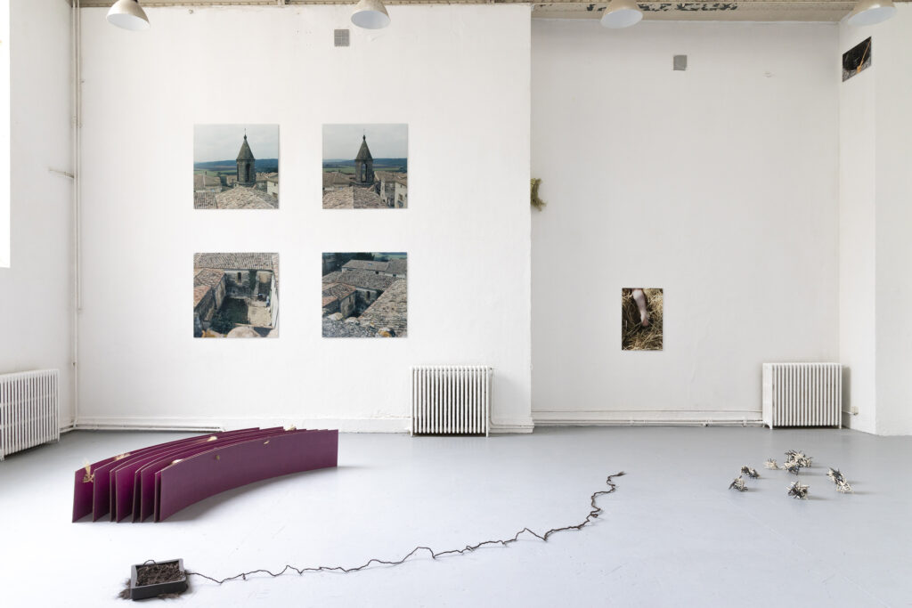 Spigaou – « voyageur » en provençal ; épillets de graminées qui poussent au bords des champs. Pointus et volatils, ils s’accrochent partout. Dans l’exposition, des photographies au cœur de la ruralité effleure les perceptions visuelles et tactiles. Des sculptures sont habitées de tressages qui sèment leur graines dans les interstices. Discrètes et affranchies, ces pointes focalisent une attention du moindre détail. L’exposition est pensée par des phénomènes de boucles, reliant les sculptures aux photographies.